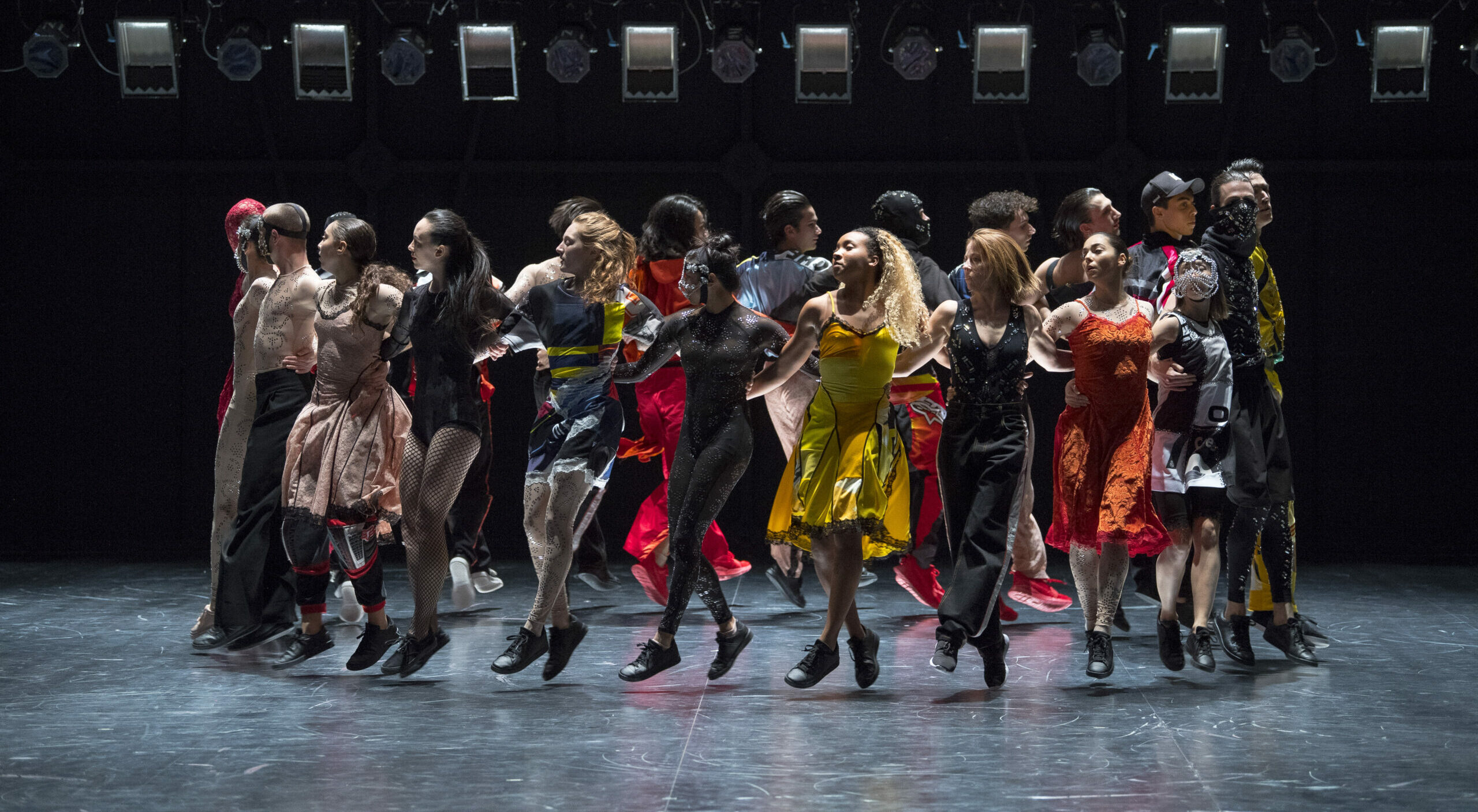Quand le Ballet de Lorraine arrive sur scène, l’ensemble savamment constitué donne à voir une manière d’être ensemble, et c’est avec cette qualité de présence haute en couleur que les corps vont traverser deux pièces distinctes, mais qui se répondent avec évidence.