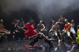 Dans Static Shot, le mouvement ne se stabilise jamais. Les corps sont conduits par une énergie continue, tendue, presque mécanique, pris dans un flux qu’il semble impossible d’interrompre. Inspiré des catwalks, le mouvement répond à une partition électro signée Chloé Thévenin et Pete Harden qui pulse en continue, offrant au public un plan-séquence hypnotisant où, à l’unisson, les danseuses et danseurs vibrent d’une énergie qui aurait été trop longtemps contenue. Alors les interprètes défilent, se mêlent, les gestes s’accumulent, s’amplifient et instaurent une tension palpable. Dans ce souffle collectif, les personnalités se distinguent grâce aux costumes et à quelques images évocatrices, mais c’est bel et bien en tant que groupe que le Ballet de Lorraine sculpte le plateau, comme un prélude du tableau suivant, a Folia.